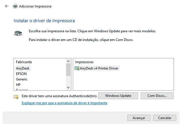- Clique em: A impressora que eu quero não está na lista.
