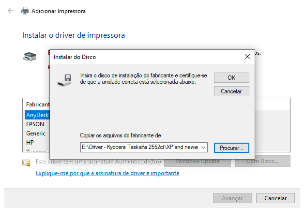 - E vá até o caminho em que você baixou o pasta e escolha o arquivo OEMSETUP.inf e clique em OK.