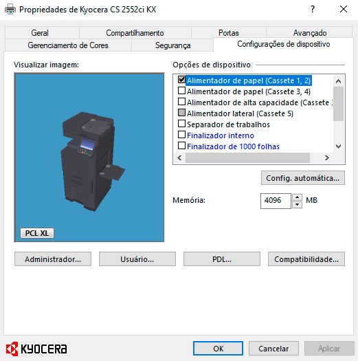 - Agora vá até Dispositivos e Impressoras novamente, clique com o botão direito em cima da impressora Kyocera e clique em Propriedades da Impressora.