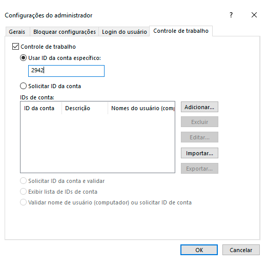 - Clique na aba Controle de Trabalho e ative a opção Controle de Trabalho.