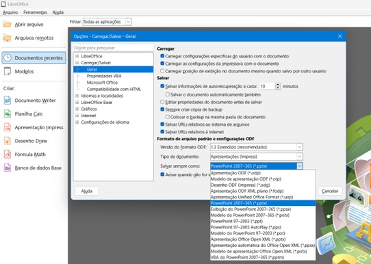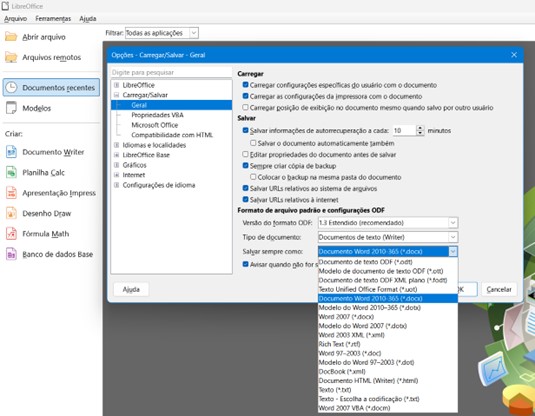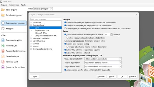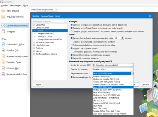 PASSO A PASSO PARA PADRONIZAR O LIBREOFFICE COM AS EXTENSÕES DE ARQUIVO DO MICROSOFT OFFICE